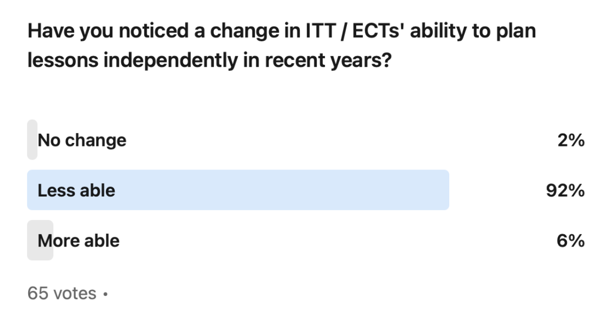 A recent LinkedIn poll of school leaders highlights a trend in ITT/ECTs ability to plan lessons independently.